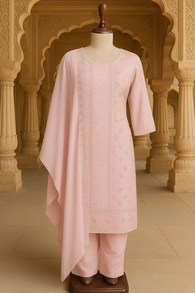 The soft powder blue hue enhances its sophisticated appeal, making it an ideal choice for festive occasions, celebrations, or evening gatherings. Lightweight and flowy, this three-piece set ensures effortless style with a refined finish.
