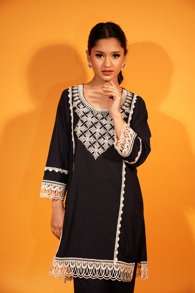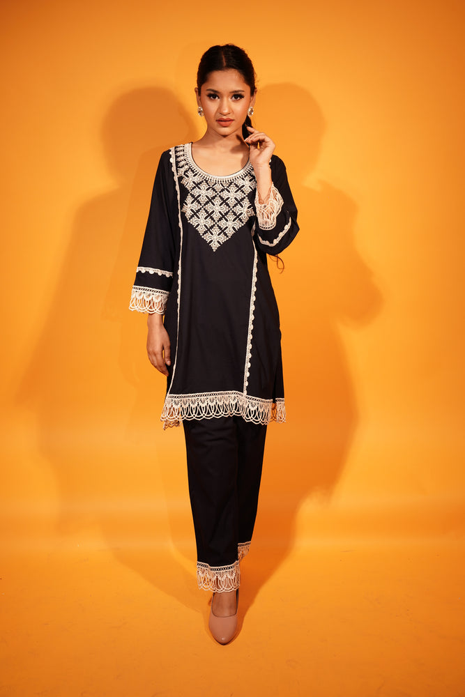 Elevate your everyday style with this stunning Cord Set featuring a Kurti and Pant in a premium Lycra Cotton Blend. Designed for both comfort and flair, the kurti showcases elegant thread embroidery enhanced with intricate nag and bead work, adding a touch of artisanal charm. The breathable fabric offers a flattering fit while keeping you at ease all day. Perfect for casual outings, office wear, or intimate gatherings, this set blends tradition with modern sophistication.