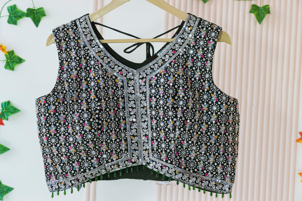 Elevate your festive and bridal wardrobe with this stunning Crop Top Lehenga in Deep Green, a perfect blend of elegance and grandeur. Crafted in flowy georgette fabric, the ensemble drapes beautifully, offering both comfort and sophistication.
