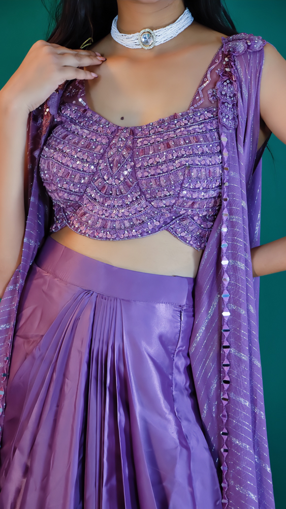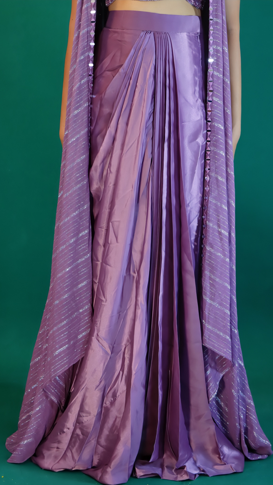 Elevate your ethnic wardrobe with this elegant Dhoti Style Dress with Shrug in a sophisticated Dusty Mauve hue. Crafted in a luxurious blend of satin and georgette, this ensemble combines comfort with contemporary style. The dress features intricate bead embroidery that adds a subtle sparkle, making it perfect for festive occasions, weddings, or evening events. The accompanying shrug enhances the ensemble’s charm, offering a graceful and layered silhouette. Pair it with statement jewelry and heels for a look that effortlessly blends tradition with modern flair.