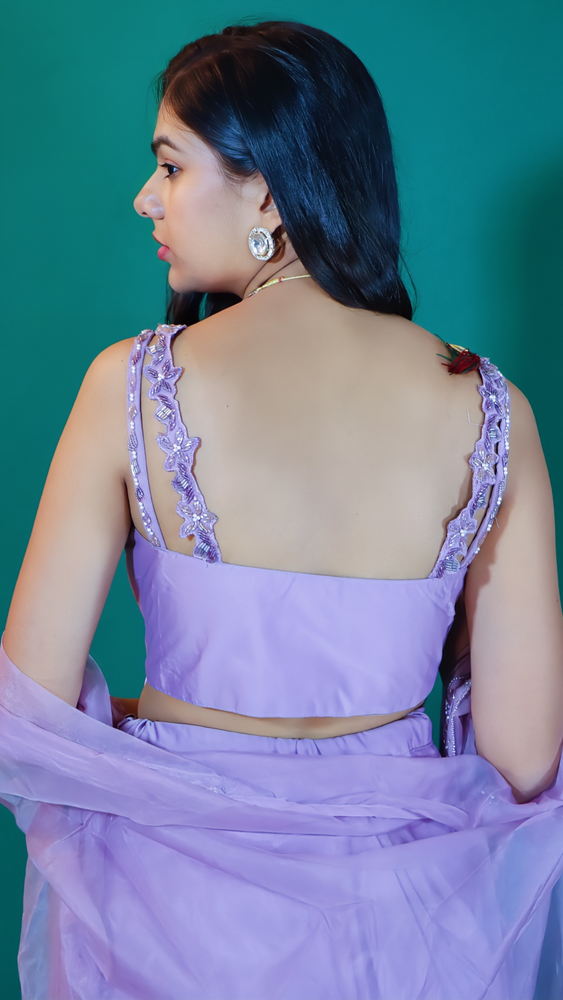 Elevate your ethnic wardrobe with this elegant Dhoti Style Dress paired with a matching shrug. Crafted in luxurious satin, this ensemble features intricate thread embroidery accentuated with beads and cutdana work, adding a touch of glamour to every angle. The flattering dhoti silhouette ensures comfort while making a bold style statement, and the coordinated shrug enhances its contemporary charm. Perfect for weddings, festive celebrations, or special occasions, this Thistle-colored outfit brings together tradition and modernity effortlessly.