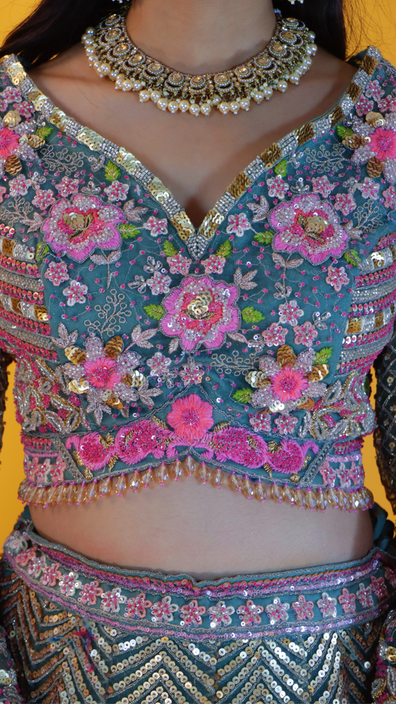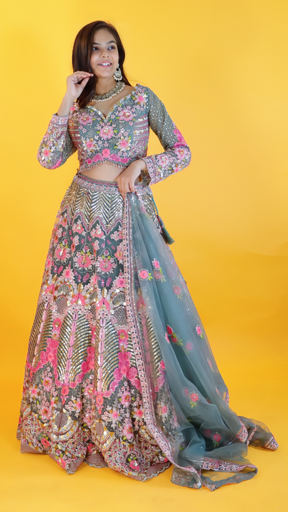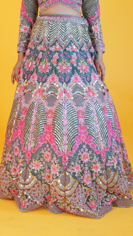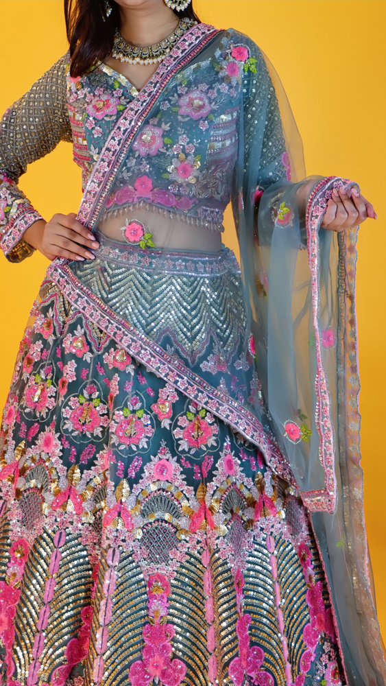 Step into timeless elegance with this stunning net lehenga, designed to make every celebration unforgettable. The lehenga is adorned with intricate zari work, shimmering sequins, delicate beadwork, and detailed thread embroidery, creating a rich and luxurious appeal. Its graceful craftsmanship and fine embellishments reflect a perfect blend of traditional artistry and modern sophistication. Ideal for weddings, festive occasions, and grand celebrations, this lehenga is sure to make you the center of attention.