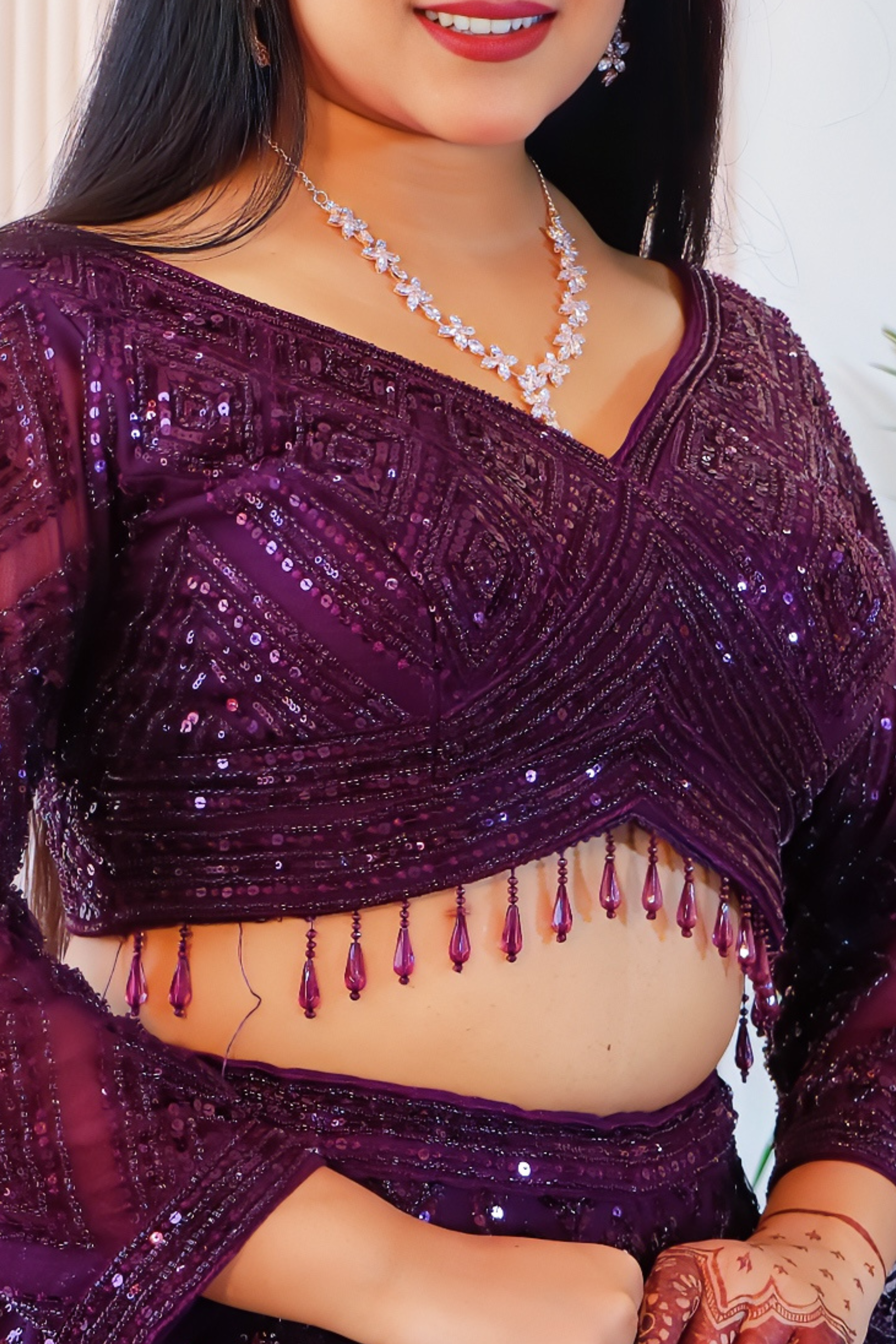 Step into elegance with this stunning Navy Blue Lehenga, crafted from premium net fabric for a graceful and flowing silhouette. Adorned with delicate sequins and intricate beadwork, this ensemble sparkles with timeless charm. The deep navy hue adds a touch of sophistication, making it perfect for weddings, receptions, and festive occasions. Pair it with statement jewelry to complete your glamorous look and be the center of attention at every event.