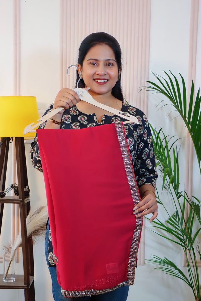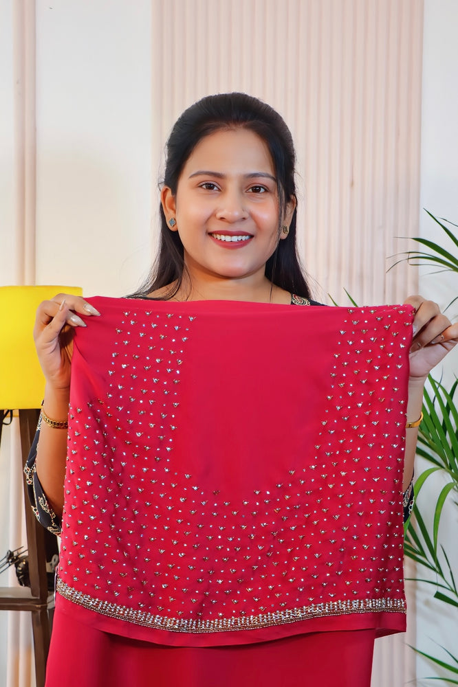 Step into timeless elegance with this stunning Maroon Satin Saree, crafted to add luxurious charm to your festive and party looks. The smooth satin fabric drapes beautifully, offering a rich and lustrous shine. Adorned with exquisite Nag and Cut Dana work, this saree brings a perfect blend of traditional artistry and modern sophistication.