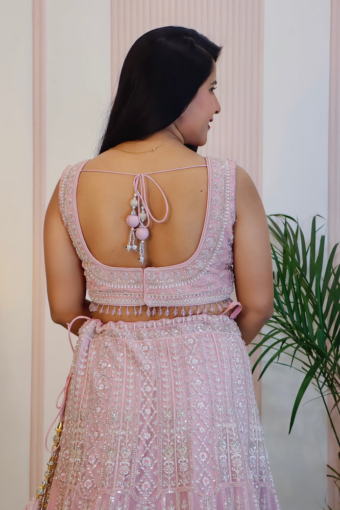Elegant Pink Net Lehenga