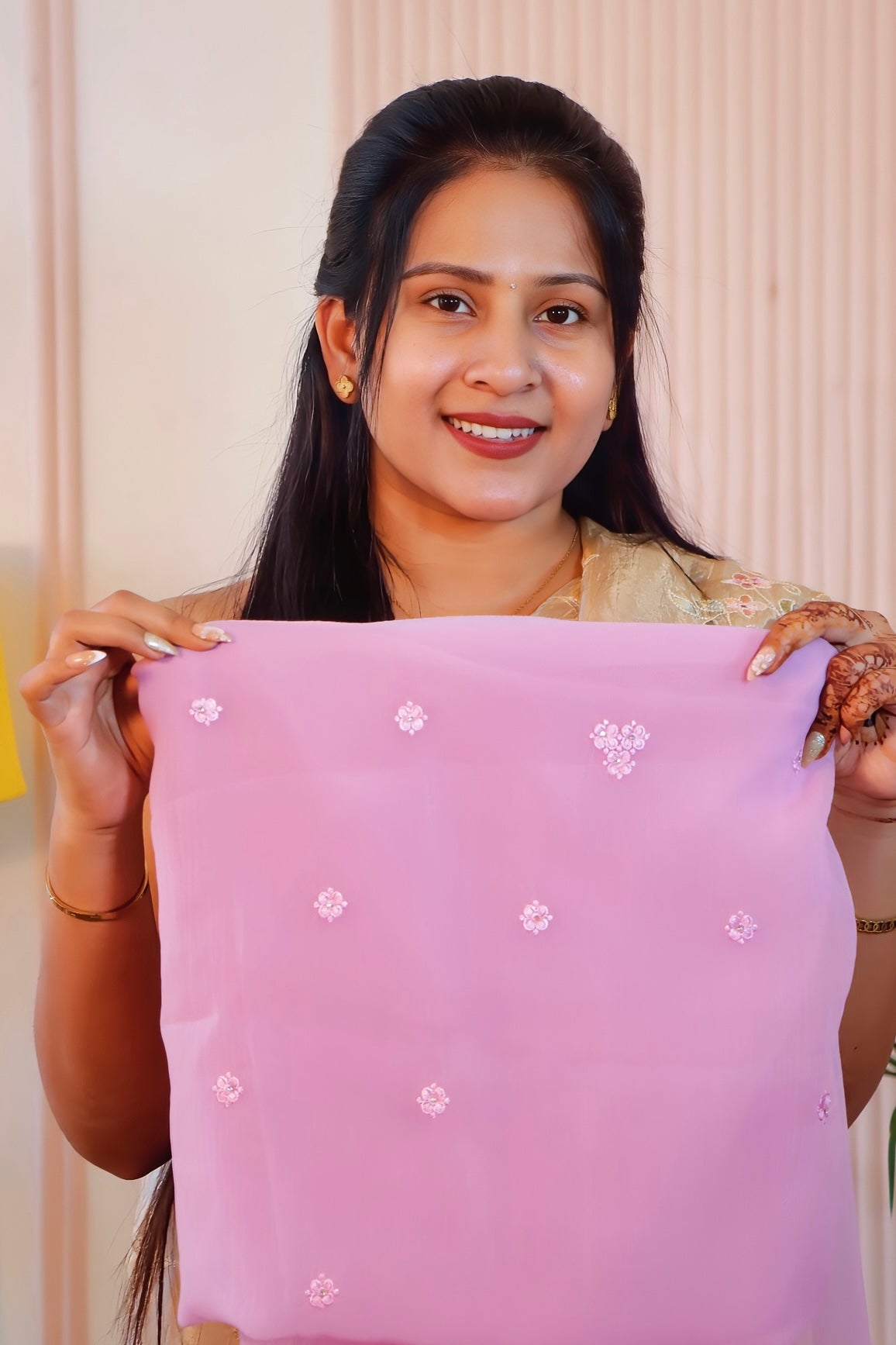 Drape yourself in effortless elegance with this stunning Tissue Georgette saree. Crafted for a graceful fall and soft shimmer, it beautifully blends traditional charm with modern sophistication. Perfect for festive occasions and celebrations, this saree adds a refined touch to your ethnic wardrobe.