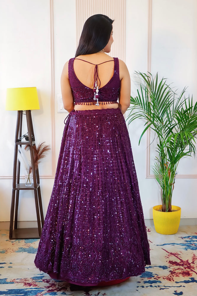 Elegant Wine Net Crop Top Lehenga