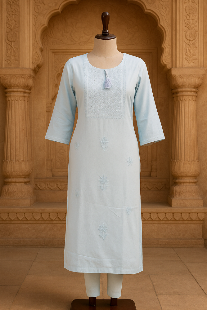 Effortlessly elegant, this stitched kurti is crafted in soft, breathable rayon cotton for all-day comfort. Adorned with delicate thread embroidery and subtle sequin accents, it adds just the right hint of sparkle to your everyday or semi-festive look. Whether paired with palazzos, leggings, or denims, this versatile piece brings refined charm to any occasion.