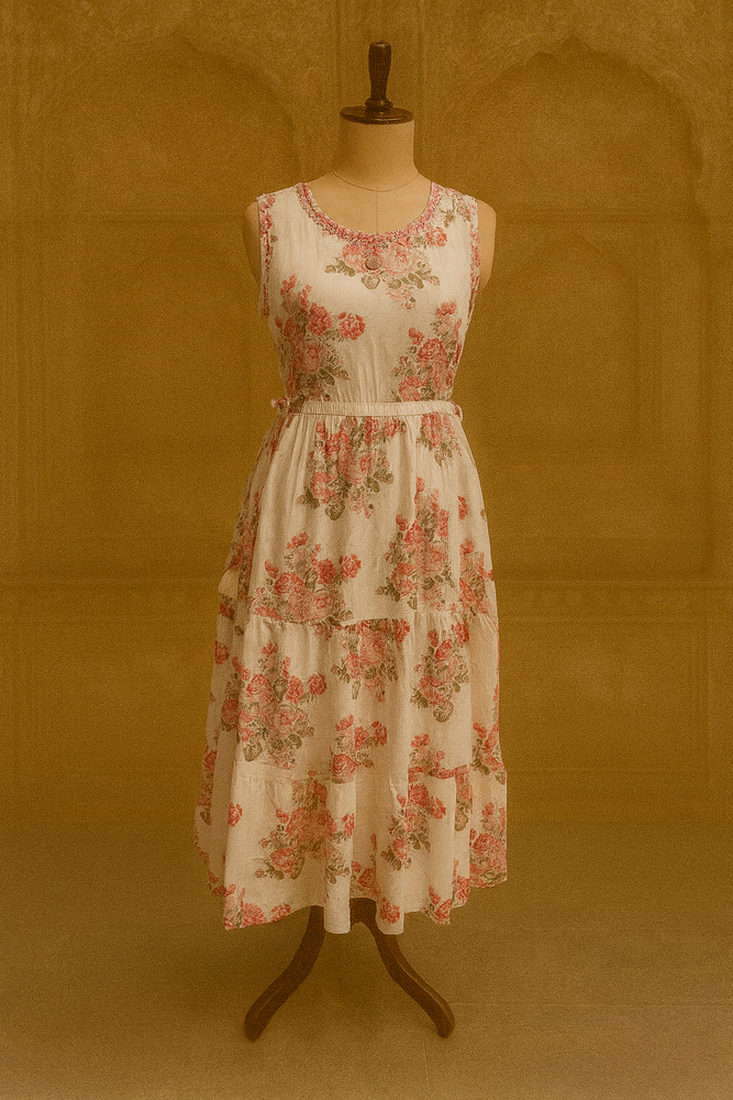 Step into effortless elegance with our White Cotton Maxi Dress, featuring an all-over floral print that adds a touch of freshness and charm. Made from soft, breathable cotton fabric, this dress offers unmatched comfort while keeping your style graceful and timeless. The flowing maxi length enhances its feminine appeal, making it perfect for brunches, beach outings, or casual evening strolls. Pair it with statement earrings and strappy sandals for a breezy, chic look.