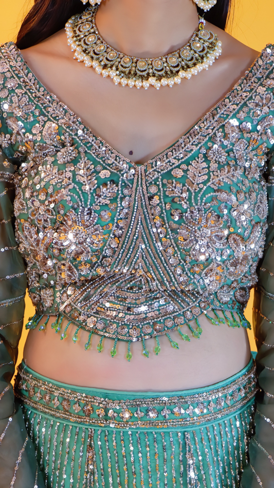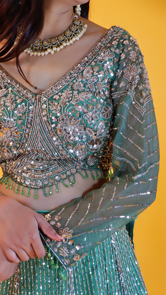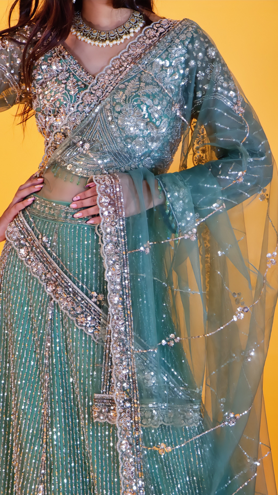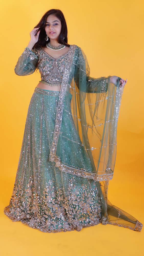 Step into timeless elegance with this stunning Net Lehenga, beautifully adorned with delicate bead and sequin work that adds just the right amount of sparkle. The lightweight net fabric ensures a graceful fall and effortless charm, making it a perfect choice for weddings, receptions, and festive occasions. Designed to blend traditional craftsmanship with modern appeal, this lehenga is sure to make you the center of attention.