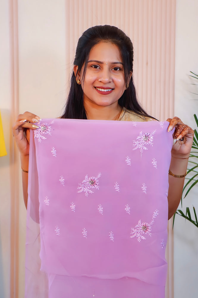 Grace your look with this exquisite Lavender Crust Silk Saree, beautifully adorned with intricate thread embroidery, delicate nag work, and shimmering zari detailing. The luxurious texture of crust silk adds a subtle sheen, making it perfect for festive occasions, weddings, and elegant celebrations. Pair it with statement jewelry for a timeless and regal look.