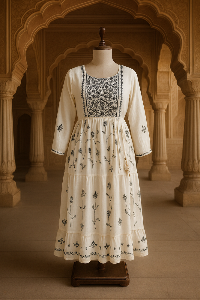 Embrace timeless elegance with our White Cotton Maxi Dress, adorned with an all-over floral print that brings a soft, feminine charm. Crafted from lightweight and breathable cotton fabric, this dress ensures all-day comfort while keeping your look effortlessly stylish. The flowing maxi length adds a graceful touch, making it perfect for brunches, beach outings, or casual day events. Pair it with delicate jewelry and sandals for a fresh, chic vibe.
