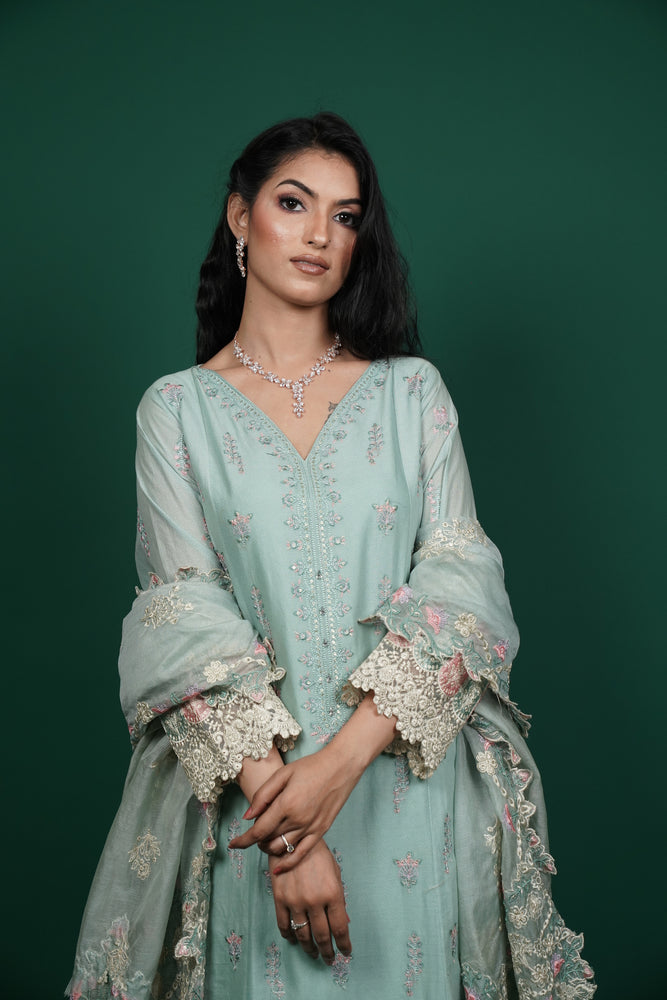 Add a breath of fresh style to your wardrobe with this Mint Green Kurti Set from Daisy Fashion – a perfect blend of comfort, elegance, and festive flair. Crafted with premium quality cotton fabric, the kurti features intricate thread embroidery paired beautifully with subtle sequin work, adding just the right touch of shimmer for any occasion.