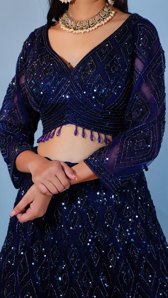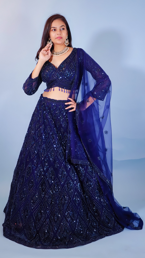 size guide of Navy Blue Lehenga with Sequins & Beadwork