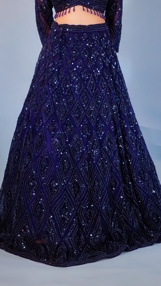 Step into elegance with this stunning Navy Blue Lehenga, crafted from premium net fabric for a graceful and flowing silhouette. Adorned with delicate sequins and intricate beadwork, this ensemble sparkles with timeless charm. The deep navy hue adds a touch of sophistication, making it perfect for weddings, receptions, and festive occasions. Pair it with statement jewelry to complete your glamorous look and be the center of attention at every event.