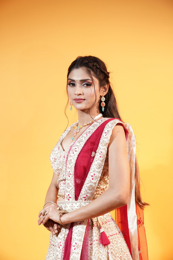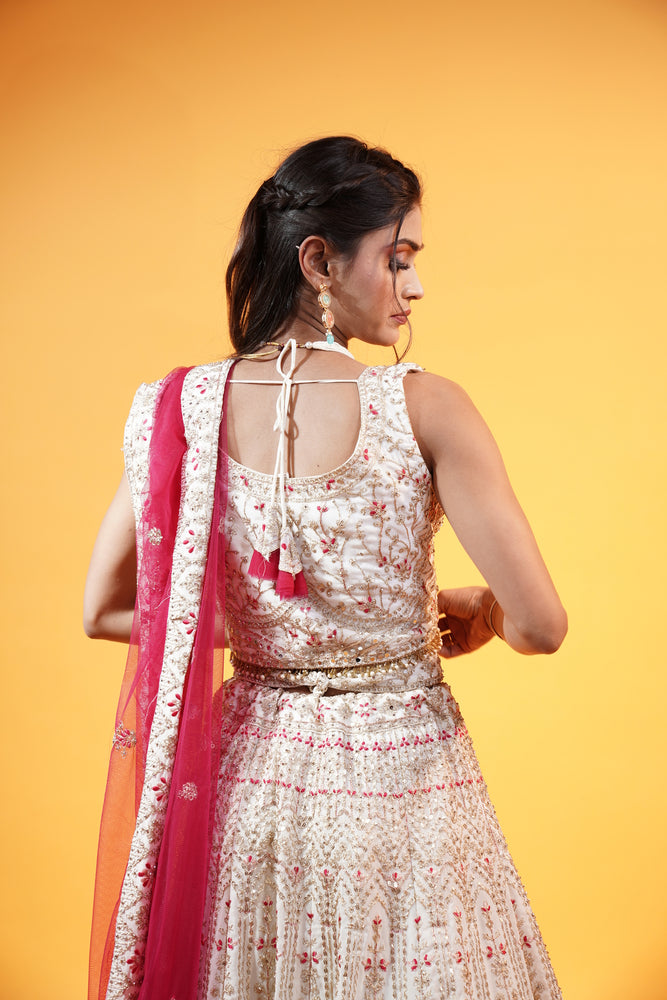 Off White Lehenga with Pink Dupatta