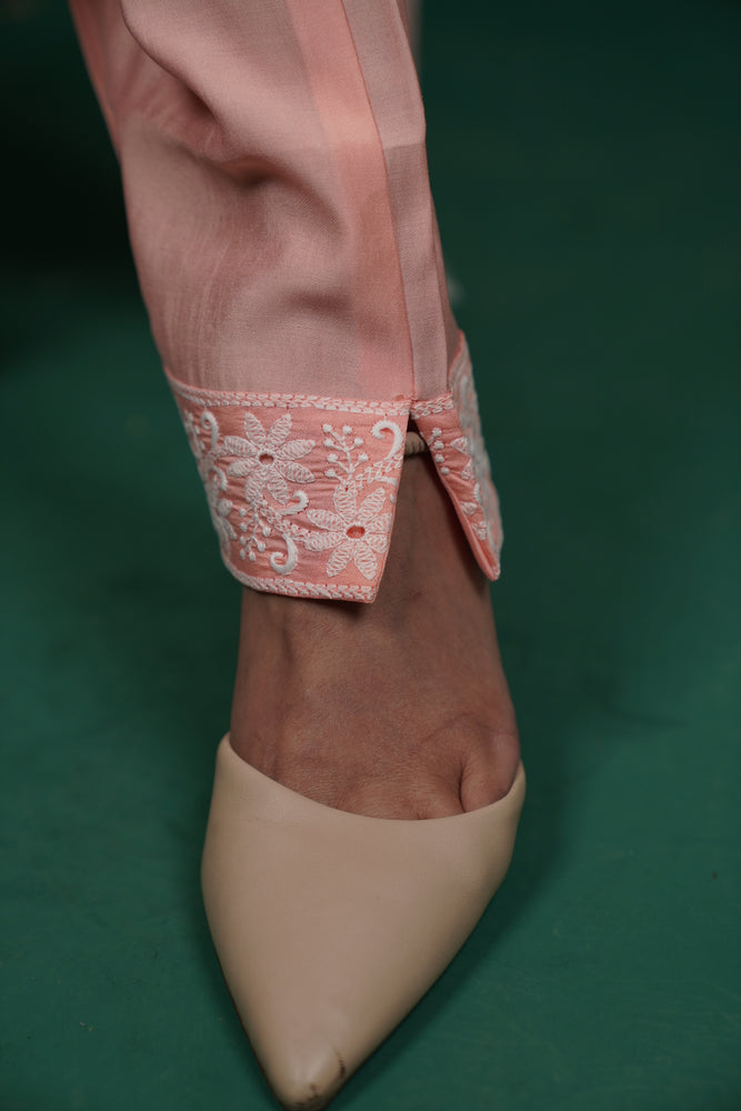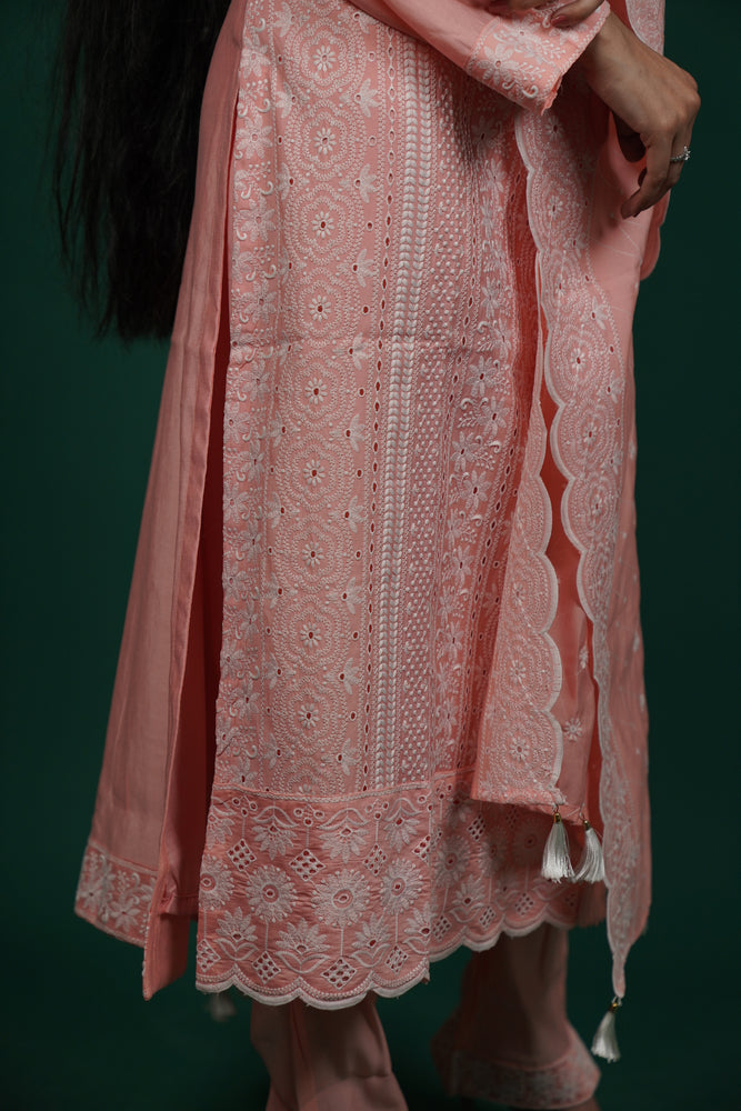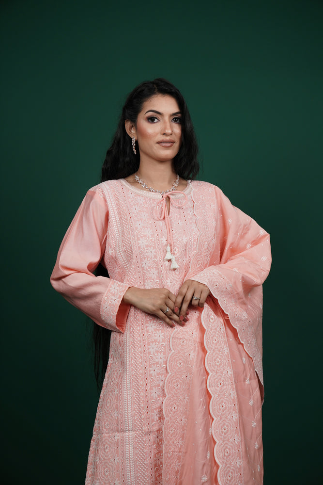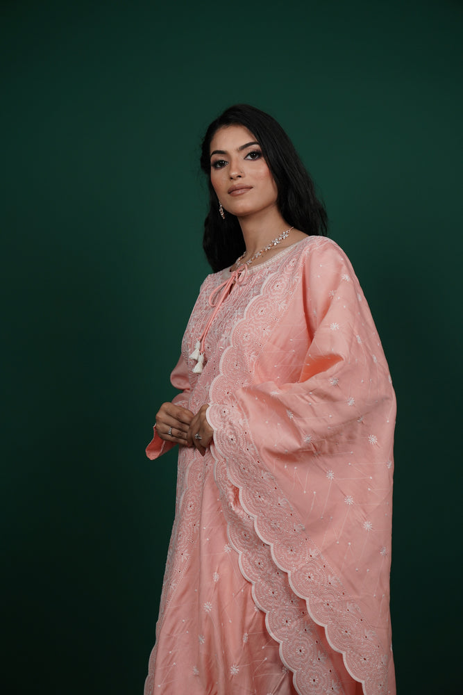 Peach Elegance – Chikankari Embroidered Kurti Set