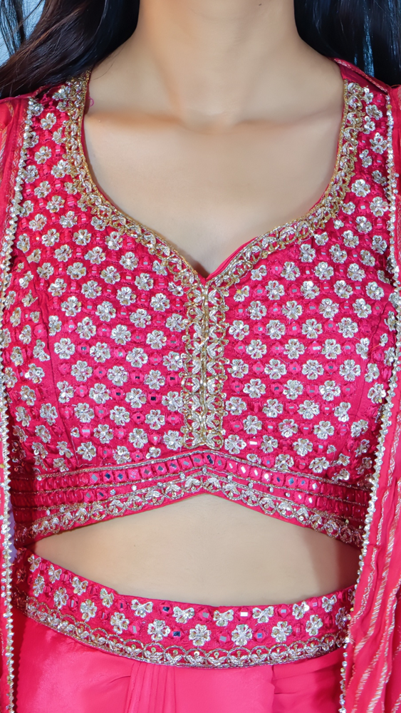 Step into elegance with this stunning Pink Dhoti Style Dress with Shrug, crafted in soft and flowy georgette fabric. The dress features intricate sequin and bead embroidery that adds a touch of sparkle, perfect for festive occasions, parties, or weddings. The dhoti-style bottom brings a contemporary twist to traditional attire, while the matching shrug enhances the overall graceful silhouette. Comfortable yet glamorous, this ensemble is designed to make you shine effortlessly at any celebration.