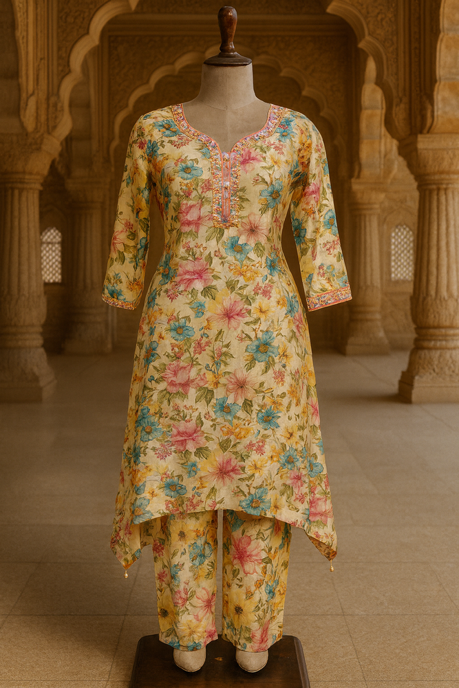 Step into effortless style with this multicolor floral print co-ord set crafted in premium crepe fabric. Designed for both comfort and elegance, this set features an all-over floral print that adds freshness and vibrance to your look. Perfect for brunches, festive gatherings, or casual outings, it gives you a chic, put-together appearance without the effort.