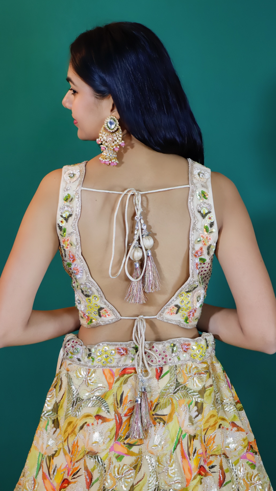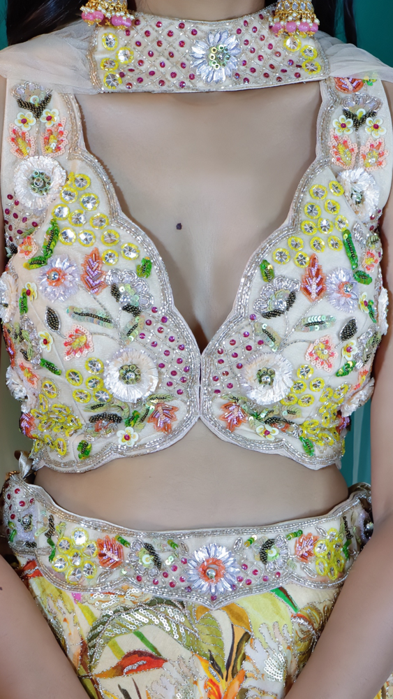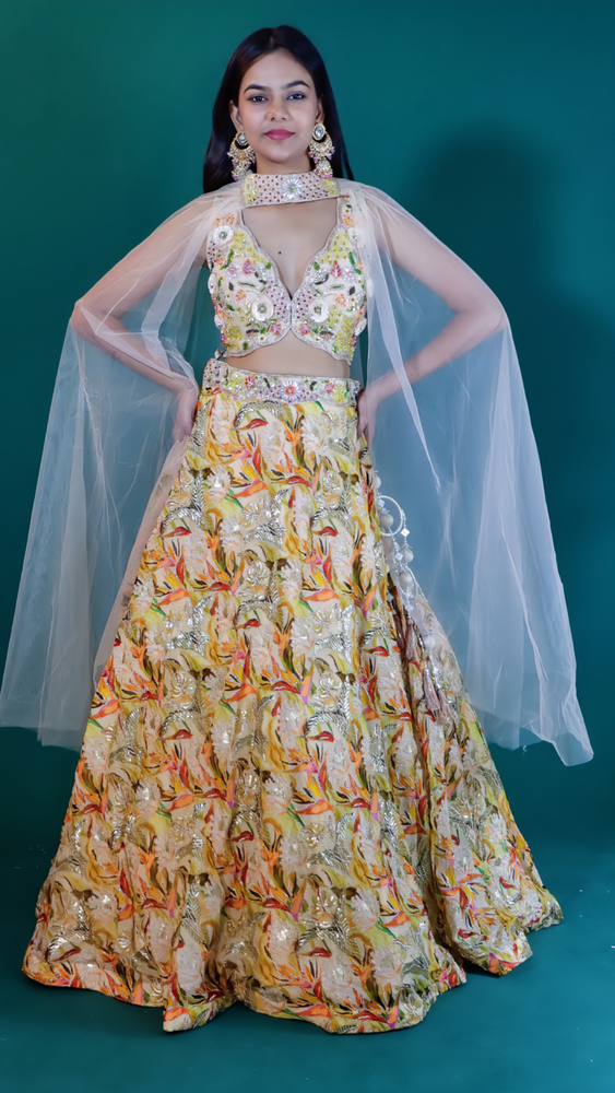 Step into timeless elegance with this stunning Yellow Raw Silk Lehenga, crafted to perfection for your special occasions. The rich raw silk fabric brings a luxurious sheen, while the intricate detailing of thread embroidery, delicate beadwork, and shimmering zari accents adds a regal charm. Designed for bridesmaids, festive celebrations, and traditional functions, this lehenga captures the essence of grace and sophistication.