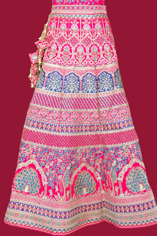 Step into timeless elegance with this breathtaking bridal lehenga, crafted from premium raw silk in a romantic pink shade. Adorned with intricate Zari, delicate thread embroidery, shimmering sequins, and traditional Nag work, this lehenga is a perfect fusion of classic artistry and modern charm. The rich texture of raw silk enhances the opulence of the detailed craftsmanship, making it an ideal choice for the bride who wants to blend tradition with sophistication on her big day.