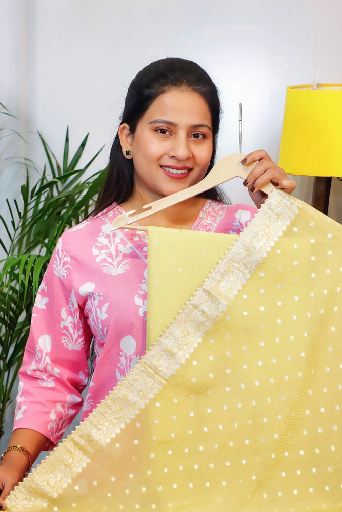 Step into timeless elegance with this luxurious Chanderi Unstitched Suit Set, crafted to perfection for festive and special occasions. The soft and lustrous chanderi fabric elevates your style with its premium feel and graceful drape. Adorned with exquisite cutdana, beads, and zari work, the suit reflects a stunning blend of tradition and contemporary charm.