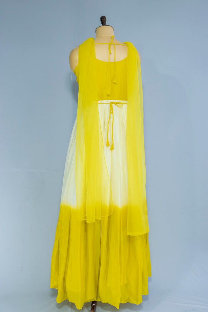 Yellow & White Chiffon Floor-Length Frock with Dupatta