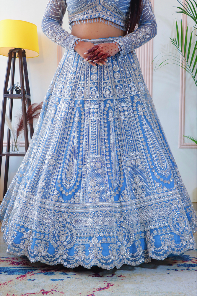 Teal Blue Sparkle Crop Top Lehenga