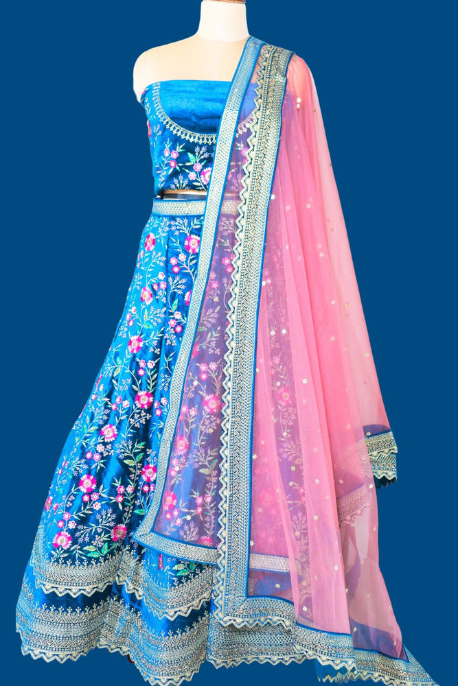 size guide of Peacock Blue Velvet Bridal Lehenga