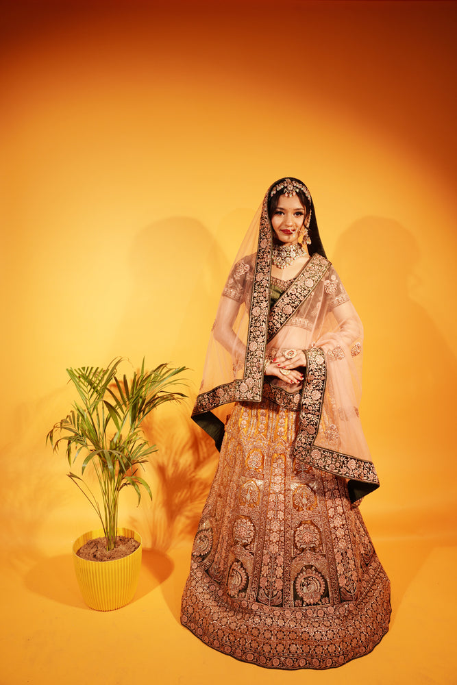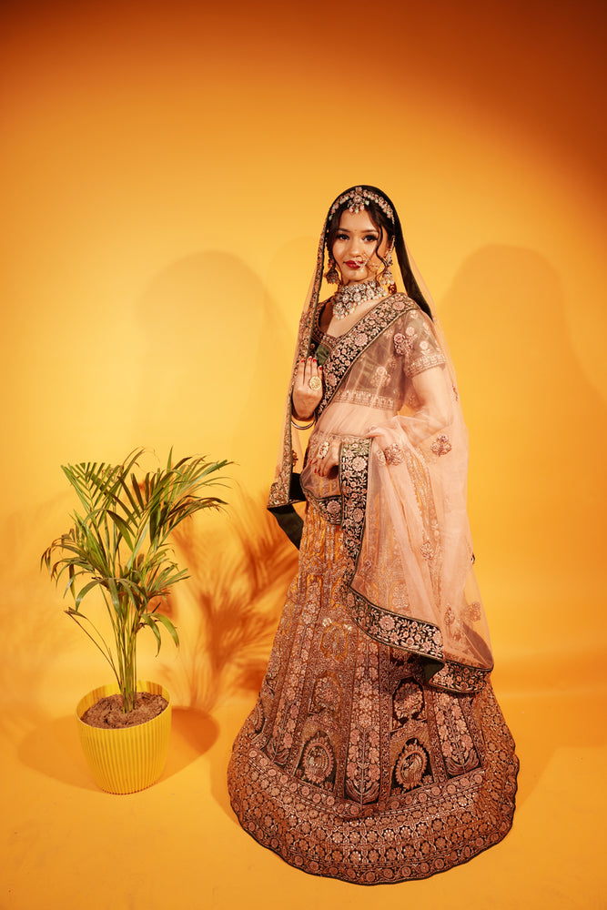 This Bridal lehenga is a perfect ensemble for brides who love to choose unique making it ideal to style for engagement, reception or wedding.