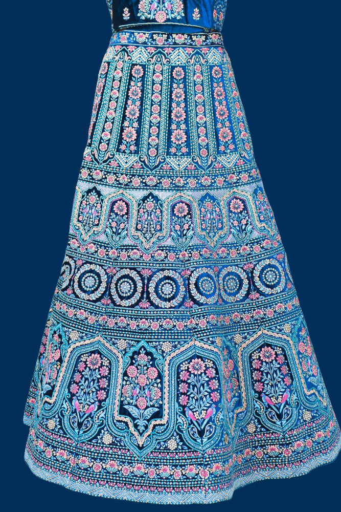 size guide of Velvet Bridal Lehenga with Mirror & Zari Work