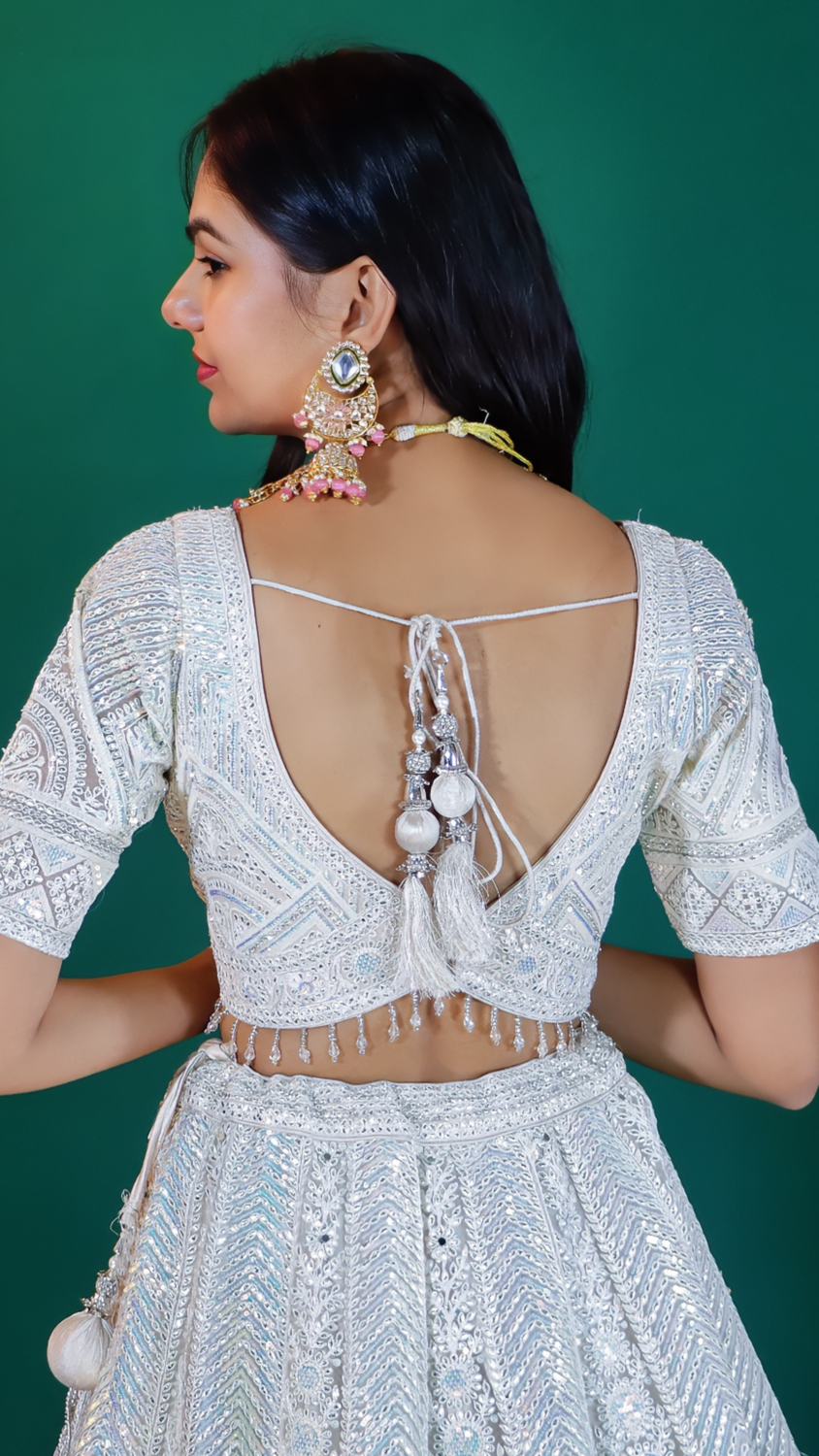 Elevate your ethnic wardrobe with this elegant White Raw Silk Lehenga, crafted to perfection for timeless grace. The rich raw silk fabric lends a regal charm, while the intricate Thread Embroidery and Nag work add a touch of artistry and sophistication. Designed in a classic white hue, this lehenga exudes purity and elegance, making it an ideal choice for weddings, festive occasions, or special celebrations. Pair it with traditional jewelry to create a statement look that’s both graceful and unforgettable.