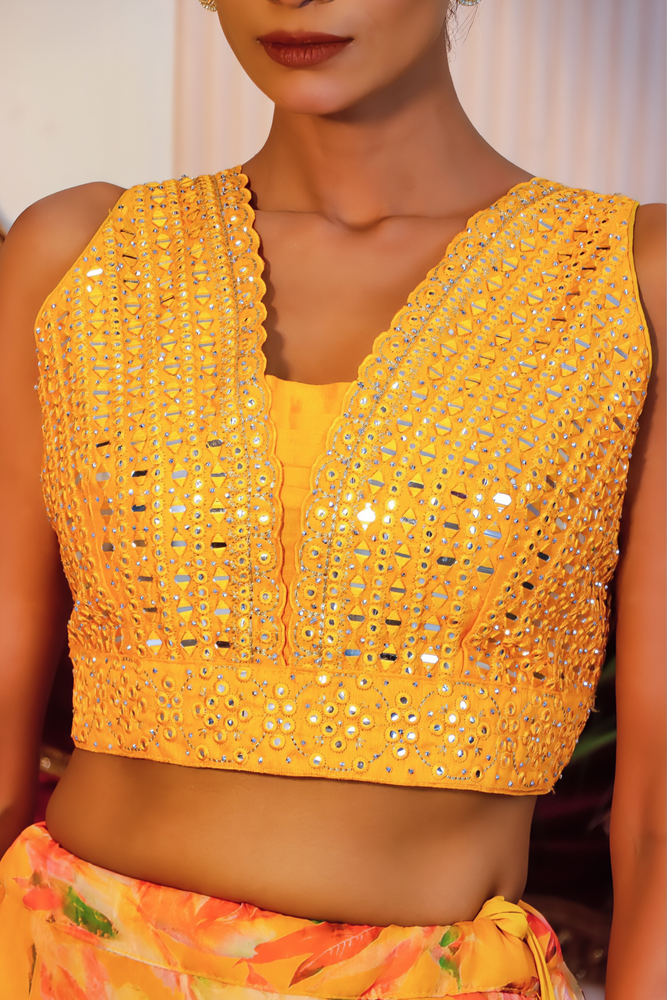 Yellow Floral Crop Top Lehenga